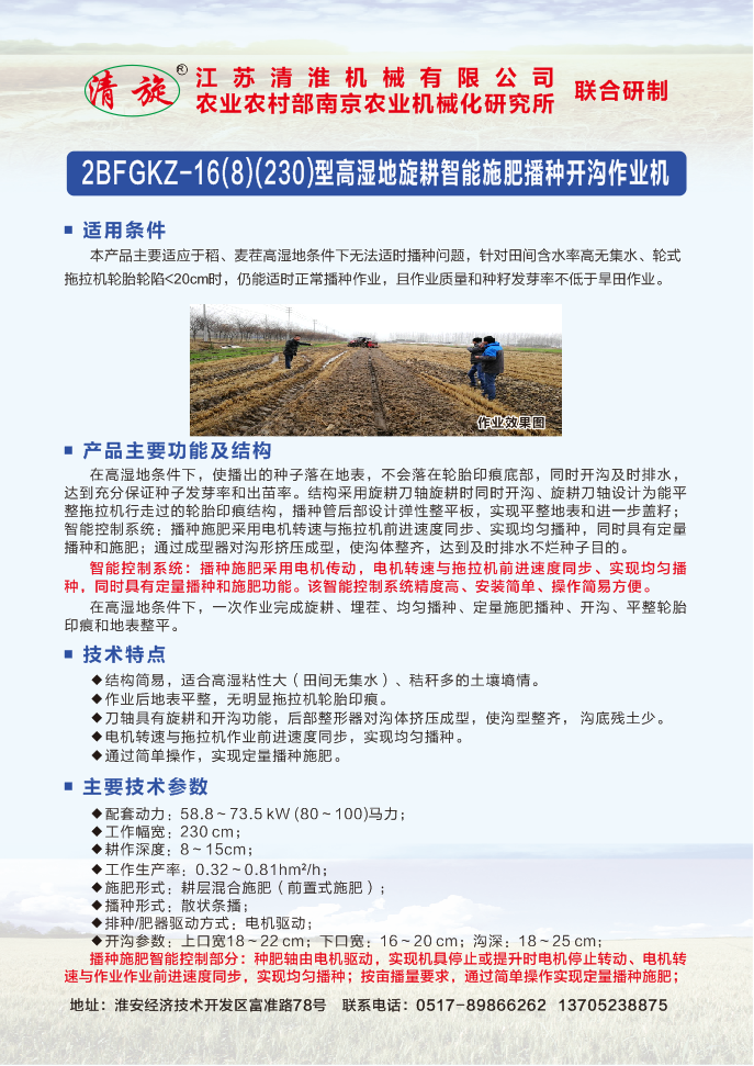 - 公司主要產(chǎn)品有清旋牌1GKN-90~450型系列旋耕機(jī);1GKNH-200~450型系列高(中)箱旋耕機(jī);1KJ型單/雙圓盤開溝機(jī)、雙溝開溝機(jī);1KG-230復(fù)式開溝作業(yè)機(jī);1JMS-180~280型系列水田埋茬(草)耕整機(jī);1GSM-200~450型系列水田埋茬起漿整地機(jī);1JMF/1JMFY-125~300型系列反轉(zhuǎn)滅茬機(jī);1GZMN-150~280型系列雙軸滅茬旋耕起壟機(jī);1JH-150~250型秸稈粉碎還田機(jī); 2BFGF/2BFG-150~250型旋耕施肥播種機(jī);2BF-8~20型施肥播種機(jī);2B-24(3.6m)型谷物播種機(jī);1LS系列鏵式犁;1LY系列圓盤犁;1BJX系列圓盤耙;1BPQ-240驅(qū)動(dòng)型耙漿平地機(jī);1SZL-200~230深松整地聯(lián)合作業(yè)機(jī);1BS-325牽引型水田耙;培土機(jī);起壟機(jī);挖穴機(jī);花生、土豆、紅薯收獲機(jī);筑埂機(jī)、有機(jī)肥撒肥機(jī)、WBZ(SL)-150~200型系列公路穩(wěn)定土拌和機(jī)等產(chǎn)品。